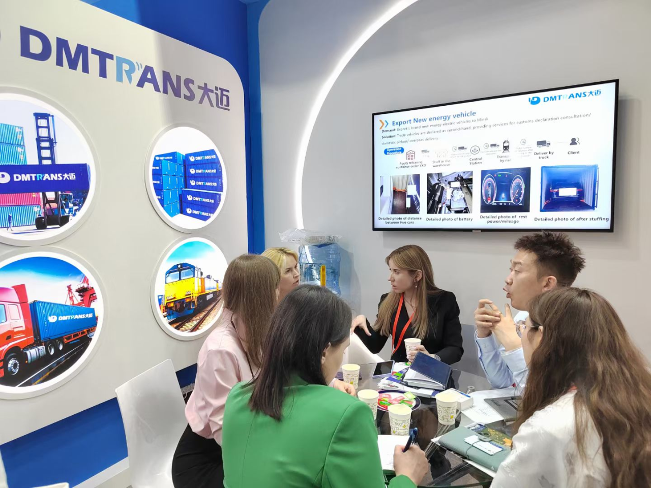 在第28届俄罗斯物流运输展会上,大迈团队统一着装,中国风的元素展示了中国团队的精气神。团队成员具有专业的知识,注重团队协作,他们自信果敢的向参展者介绍公司的航线产品及解决方案,充分展示团队的业务能力,并与参会者共同探讨行业的未来发展趋势。